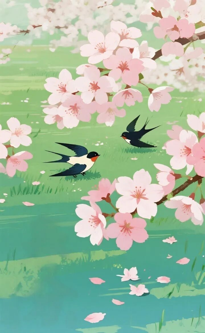 一只“洁白小燕儿”就这样诞生了!祖父拿出他的笔,用湖水绿和万花红来装点,祖父说这样才有春的味道。