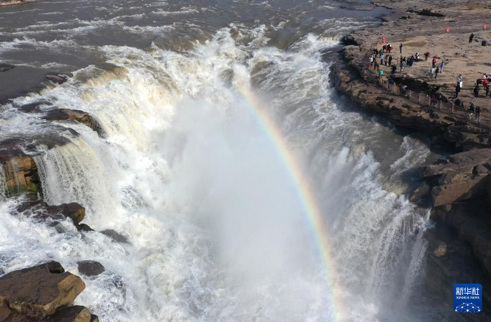 惊蛰时节,随着气温回暖,黄河上游河段融冰开河速度加快,壶口瀑布水量增大。