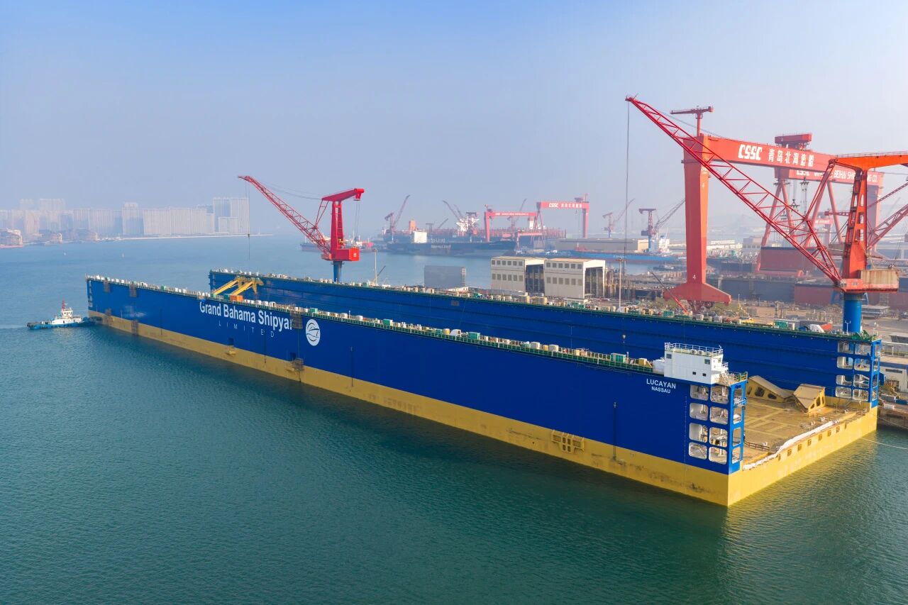2月6日,由中船北海造船联合中船贸易共同打造的12万吨举力浮船坞“Lucayan”号正式签字交付,标志着北海造船在超大型浮船坞领域的技术与建造实力跃升新高度。