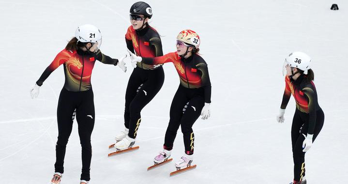 当地时间2月18日,在米兰-科尔蒂纳冬奥会短道速滑女子3000米接力B组决赛中,中国队获得第一名。