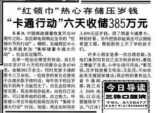 不过,作为和年夜饭、新衣服并列的过年“三件套”,压岁钱的地位很难被撼动。1996年,银行开始鼓励儿童存款。在中国邮政储蓄恢复开办10周年之际,朝阳、东城的中小学生积极参加“集邮储蓄卡通大行动”。邮储仅六天就收储385万余元。许多小朋友第一次办存款,拿到写有自己名字的存折喜不自胜,小学生胡丹丹存入了2000块钱。(1996年3月4日《北京晚报》1版《“卡通行动”六天收储385万元》)而往前数十年,北京孩子的压岁钱还在用“毛票”或三块五块来衡量,中国经济的腾飞,就藏在这些细节里。