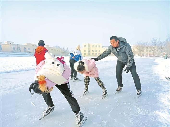 如今,叶永江的脚步早已走出校园。他积极参与六师五家渠市冰雪风情季活动,带领学生进行速滑表演,并设立公益体验区,为职工群众开展蹬冰、滑行、制动等基础动作教学,帮助更多人完成“第一次上冰”。从最初的少数人参与,到如今单场活动吸引上百名职工群众积极加入,一〇三团冬季冰雪活动参与度持续提升,冰雪运动正逐步成为群众冬季健身的重要方式。