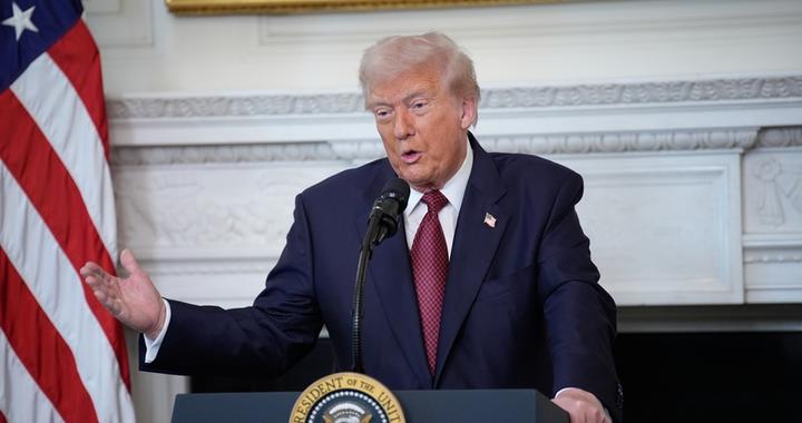 2025年11月5日,美国华盛顿,美国总统特朗普在白宫与共和党参议员共进早餐并发表讲话。 IC Photo