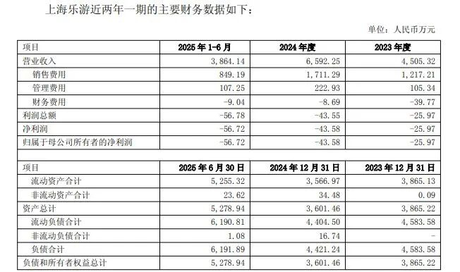 然而,上海乐游2024年净利润为-43.58万元,2025年上半年则为-56.72万元。这意味着标的公司必须在极短时间内实现从亏损到持续盈利的逆转。