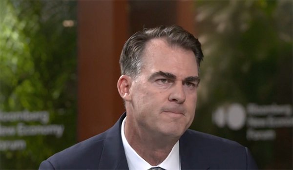 当地时间11月21日,俄克拉荷马州共和党籍州长凯文·斯蒂特(Kevin Stitt)接受彭博社采访 视频截图
