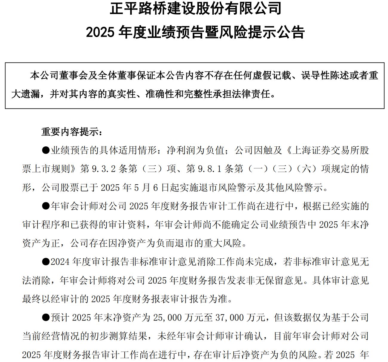 对*ST正平而言,2025年年报将是决定其上市地位的关键。