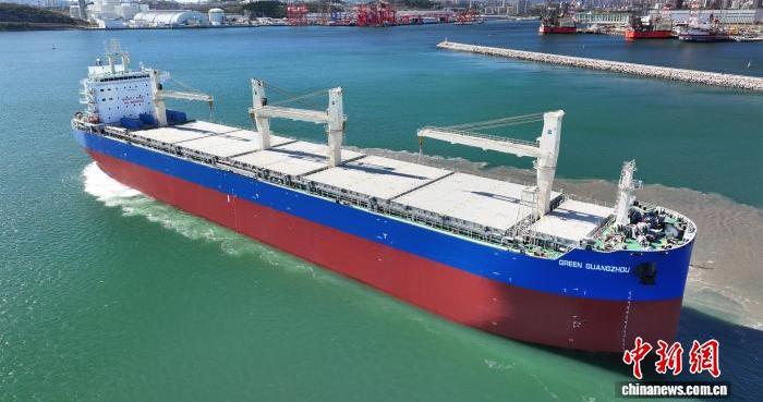 中新社大连11月14日电(记者 杨毅)由大连中远海运重工有限公司建造的系列多用途纸浆船中的最后一艘——“GREEN GUANGZHOU”轮,于14日在辽宁大连正式命名,即将交付船东,标志着大连中远海运重工自2017年承接的50艘多用途纸浆船建造订单全部完成。