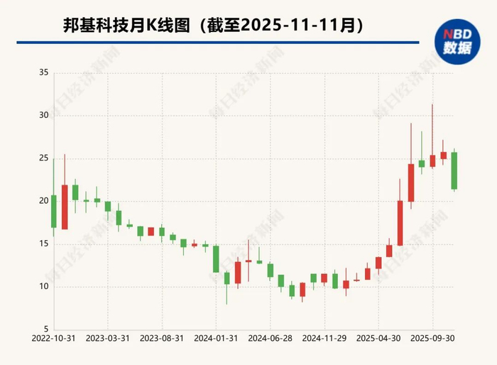 二级市场上,在宣布重大资产重组停牌前,邦基科技股价已出现异动。6月4日公司股价涨停,复牌后股价连续收获两个涨停板(6月17日、18日),此后股价持续上行,最高时较重大资产重组前上涨近一倍。最近两个交易日(11月10日、11日),公司股价有较大回落。11月12日,邦基科技股价继续下跌,截至发稿,下跌4.85%,报20.41元/股,总市值35亿元。